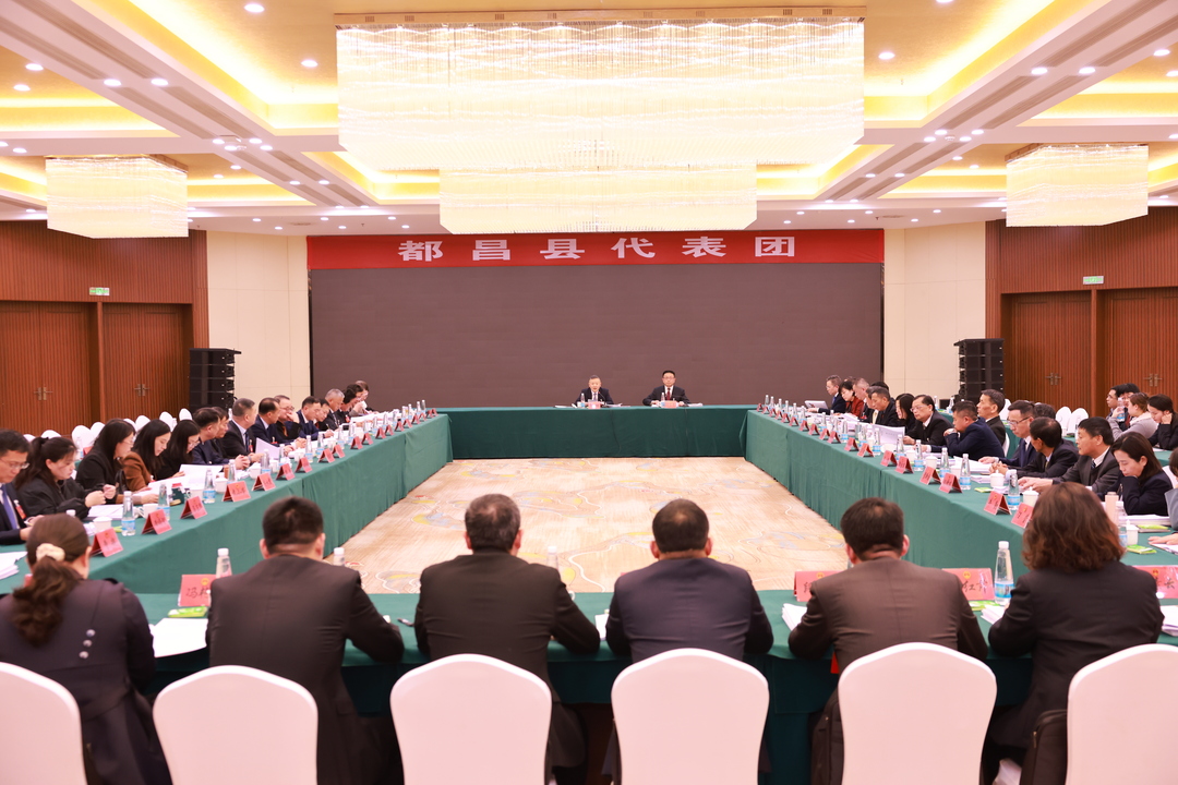 1月15日下午,出席九江市第十六届人民代表大会第七次会议的都昌县代表团进行第一次分代表团活动,县委书记徐翔主持会议,县人大常委会主任叶长青,县委常委、县纪委书记、县监委代理主任梅中华等都昌县代表团全体代表出席会议。